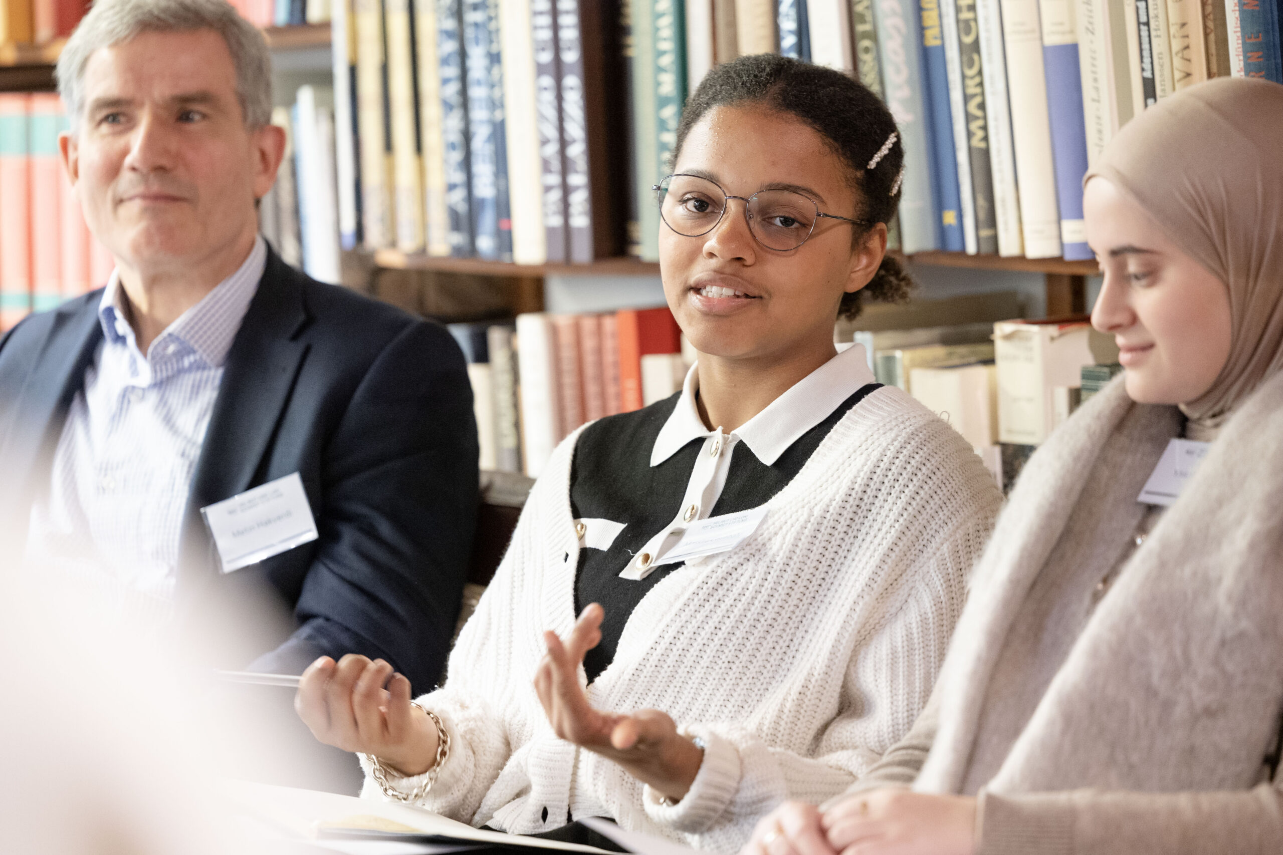 „Dieses Erlebnis war für mich sehr eindrucksvoll, weil wir unsere Sicht als junge Menschen einbringen konnten und an einem Ort diskutierten, der politisch und historisch eine große Bedeutung besitzt.“, so beschreibt Yasmin Taboni ihre Erfahrung an einem Sonntag im Oktober. Zusammen mit Massira Coulibaly und Ishak Koca vertrat sie das HSG in einem spannenden Gesprächsformat im Wohnhaus von Helmut und Loki Schmidt in Langenhorn zum Thema „Demokratie und Schule“. Zusammen mit Schüler:innen des Friedrich-Ebert-Gymnasiums diskutierten die Drei mit dem Bundestagsabgeordneten Metin Hakverdi, der ZEIT-Journalistin Jeannette Otto und Theresa Rüthermann vom Hamburger Landesinstitut für Qualifizierung und Qualitätsentwicklung in Schulen und stellten fest, dass die Schulen insgesamt noch viel mehr tun können, um Demokratie zu leben und echte Teilhabe von Schüler:innen zu ermöglichen. Ishak ergänzt: „Die Gesprächsrunde war für mich sehr bereichernd und auch wichtig, da wir als Jugendliche eine Stimme bekommen haben, was in moderner Politik leider viel zu selten passiert.“